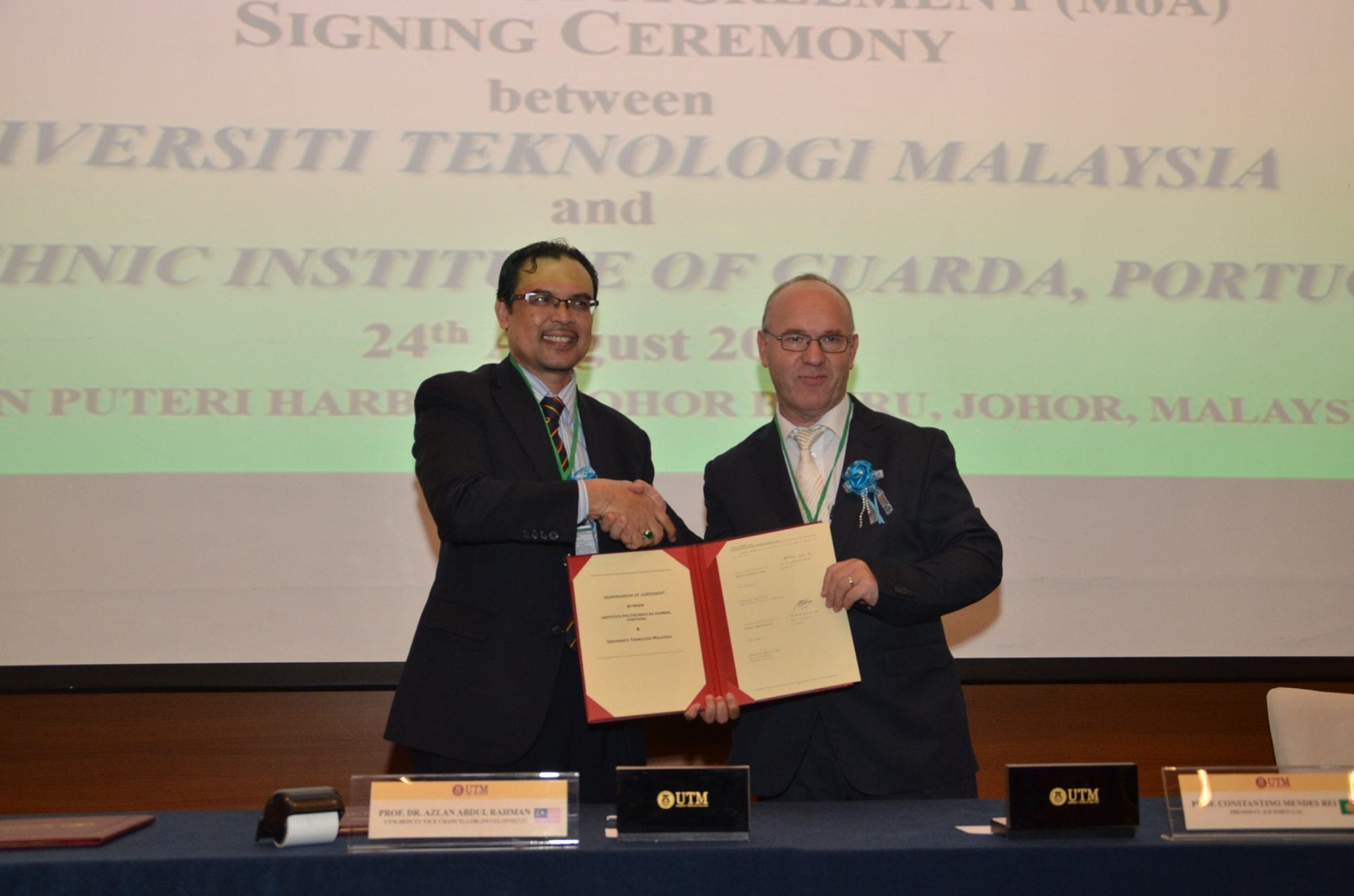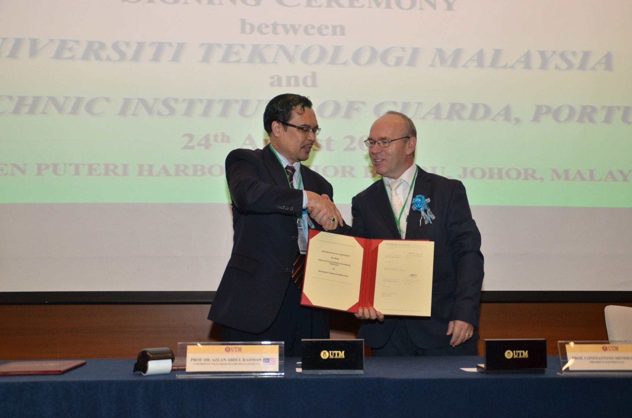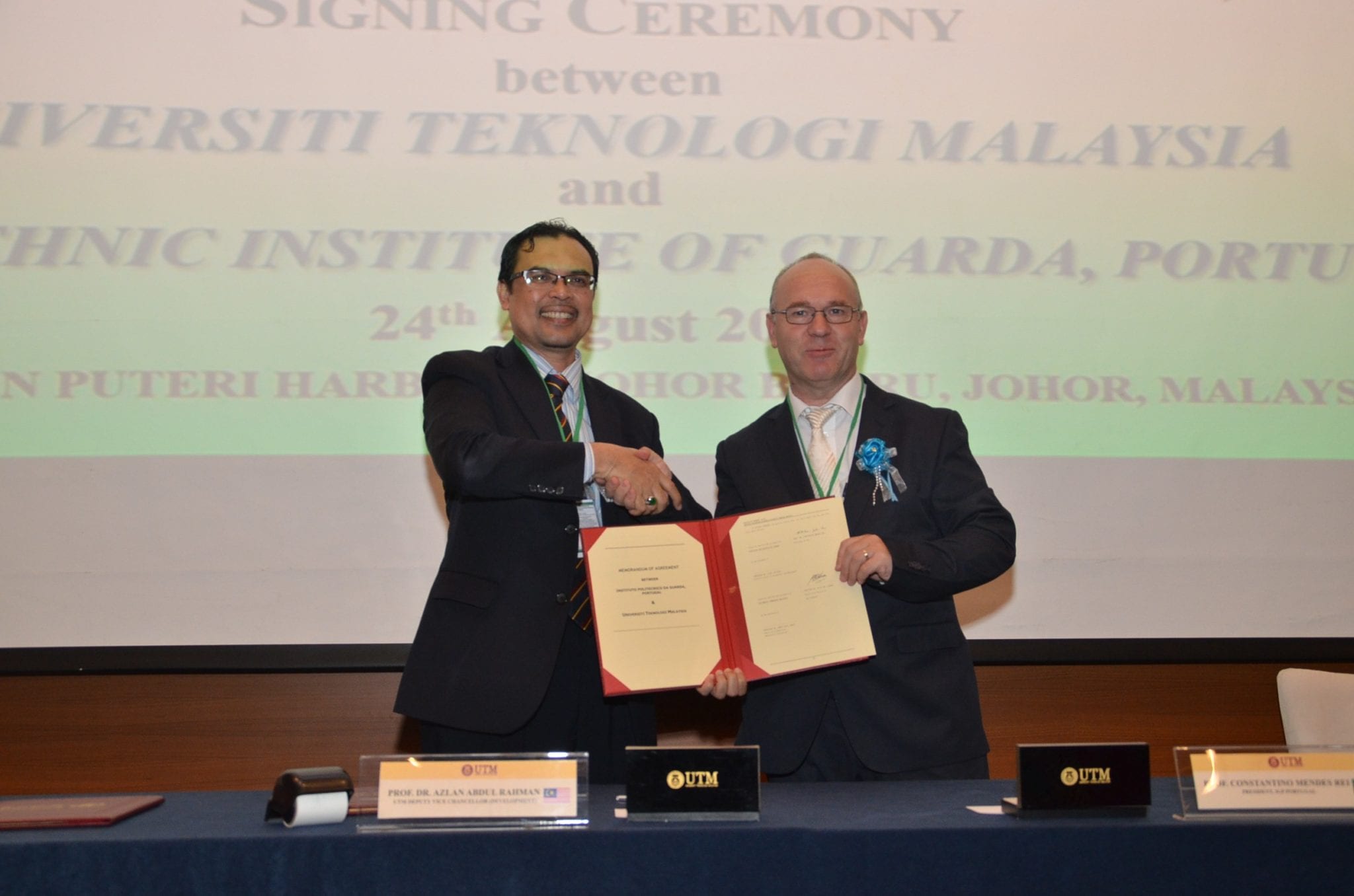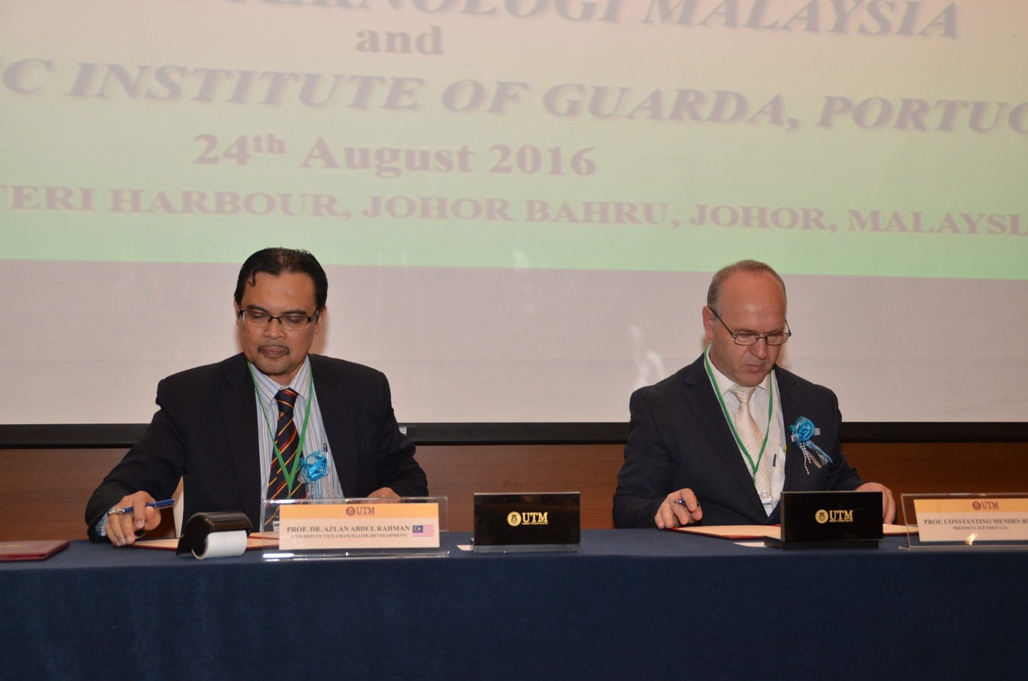 24 August 2016: MoU & MoA Signing Ceremony between UTM Big Data Centre & Polytechnic Institute of Guarda, Portugal Venue : Hotel Jen Puteri Harbour, Johor, Malaysia |