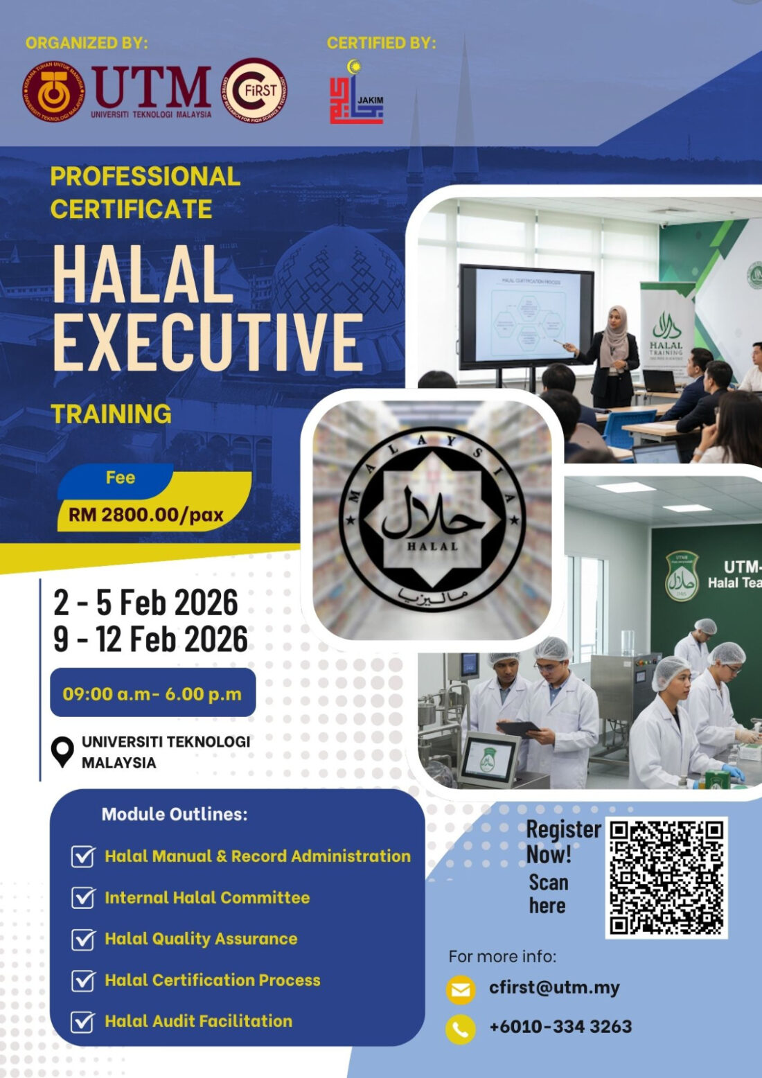 Welcome to the official registration form for the Professional Certificate in Halal Executive Training, organized by UTM–CFiRST (Centre for Research in Fiqh Science & Technology).