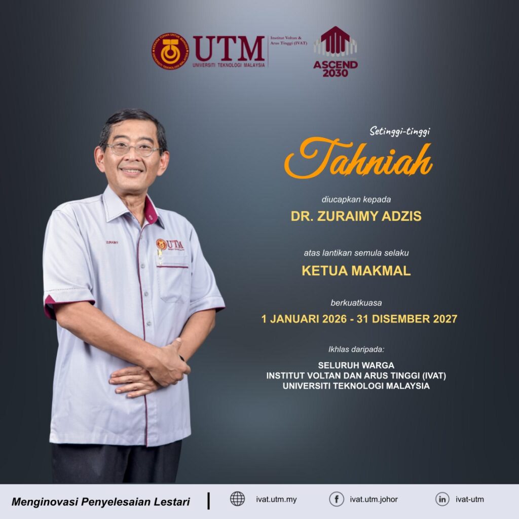 Warga Institut Voltan dan Arus Tinggi (IVAT) mengucapkan setinggi-tinggi tahniah dan mendoakan agar beliau terus mencapai pelbagai kejayaan serta menyumbang kepada kemajuan institusi pada masa hadapan. 🎉