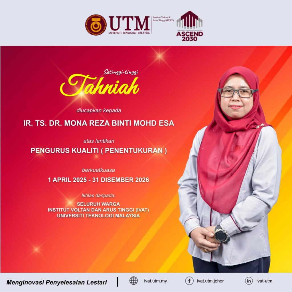 Warga Institut Voltan dan Arus Tinggi (IVAT) mengucapkan selamat maju jaya dan semoga terus cemerlang dalam melaksanakan amanah pada peranan baharu ini. 🎉