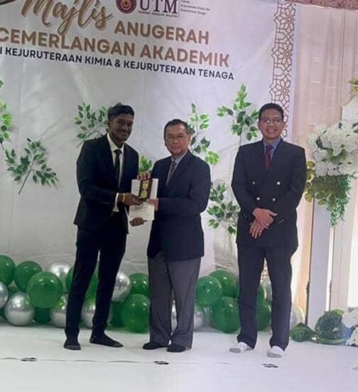 Universiti Teknologi Malaysia (UTM) proudly celebrates the outstanding achievements of Mr. Theaveraj a/l Ravi, a Ph.D. candidate in Chemical Engineering, from the Faculty of Chemical and Energy Engineering (FKT), for his remarkable academic performance, leadership involvement, and international recognition.