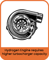 Hydrogen combustion has many orders of magnitude higher flame speed compared to gasoline and diesel. Thus, injection strategy and combustion control are also key elements to be tuned for an efficient operation. Due to the high energy content and high flame speed, hydrogen must be combusted in a very lean mixture, which requires much more air intake compared to the equivalent gasoline or diesel engine. This demands a bigger capacity charge-compressor, compared to the equivalent gasoline or diesel engine. However, the turbine that powers the charge-compressor is faced with comparably lower enthalpy exhaust, as it mostly consists of water vapour. This makes a conventionally matched turbocharger not suitable for hydrogen combustion. Advanced matching needs to be established between the charge-compressor, turbine and the engine.
