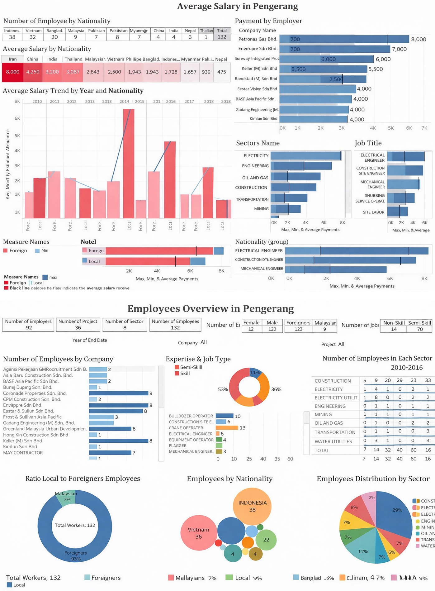Fig.1: Sample dashboards for the Profiling of Foreign Workers in Pengerang project (Institut Inovasi Strategik Johor, hypothetical data).