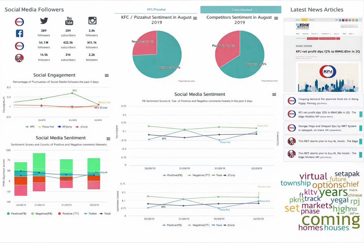 Fig. 2: Sample Social Media Sentiment Analysis Dashboard for the Data Advisory for Johor Corporation (hypothetical data).